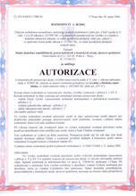 - rozhodnutí o udělení autorizace vydané ÚNMZ k činnostem posuzování shody stanovených výrobků podle NV č. 9/2002 Sb. (emise hluku);